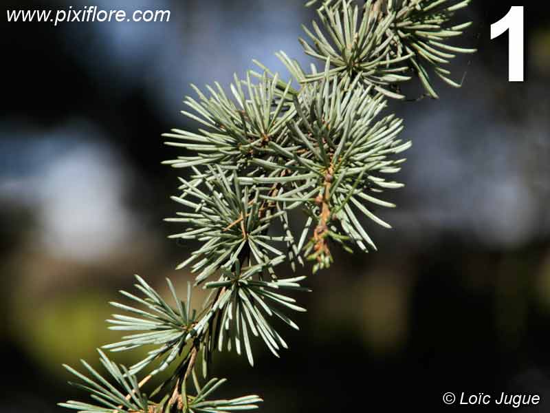 Il n'est pas si facile de le différencier du cèdre de l'Atlas qui a un port plus ascendant, des cônes plus petits au sommet tronqué, des aiguilles aussi plus petites (2 cm), disposées en faisceaux plus denses et il a des rameaux pubescents.